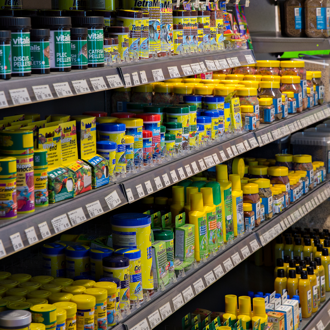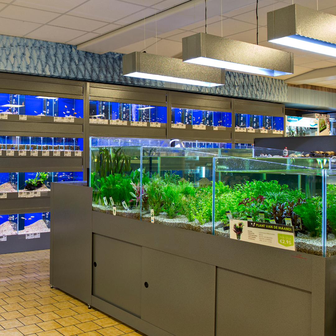 Onze aquariumafdeling is de ideale plek voor elke liefhebber. Langs een indrukwekkende wand van tien meter ontdek je een grote variatie aan kleurrijke zoetwatervissen, kreeften, garnalen en slakken. Daarnaast bieden we een ruime keuze aan kwaliteitsvoer, onderhoudsproducten en medicijnen om je aquarium in topconditie te houden.