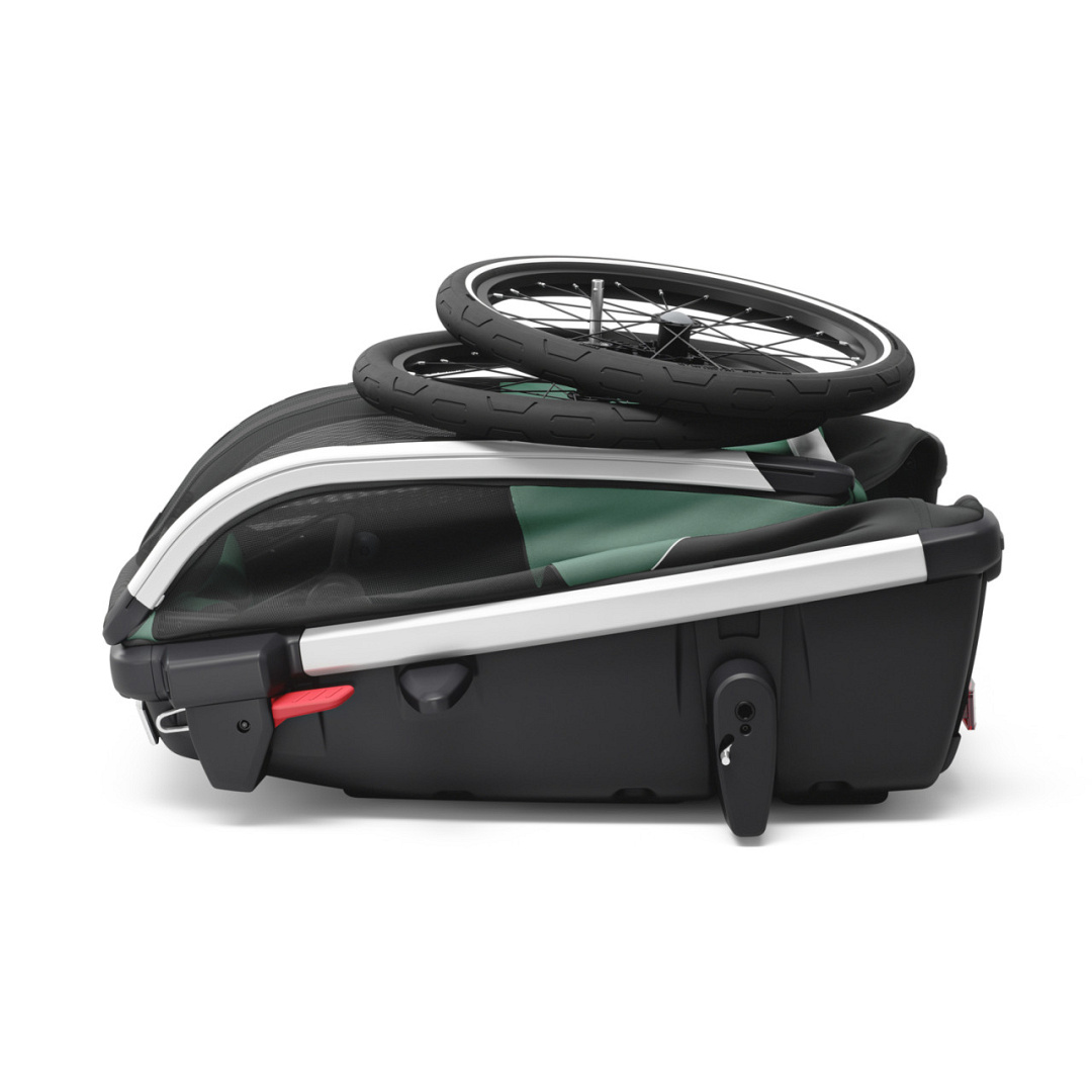 Door de wielen en de stang te verwijderen kun je de wagen stevig op de grond plaatsen zodat jouw hond goed kan wennen aan de fietskar. De montage aan de fiets is in een mum van tijd gebeurd door de nieuwe Thule fietskoppeling. De wagen is eenvoudig inklapbaar voor bv opslag of transport.
