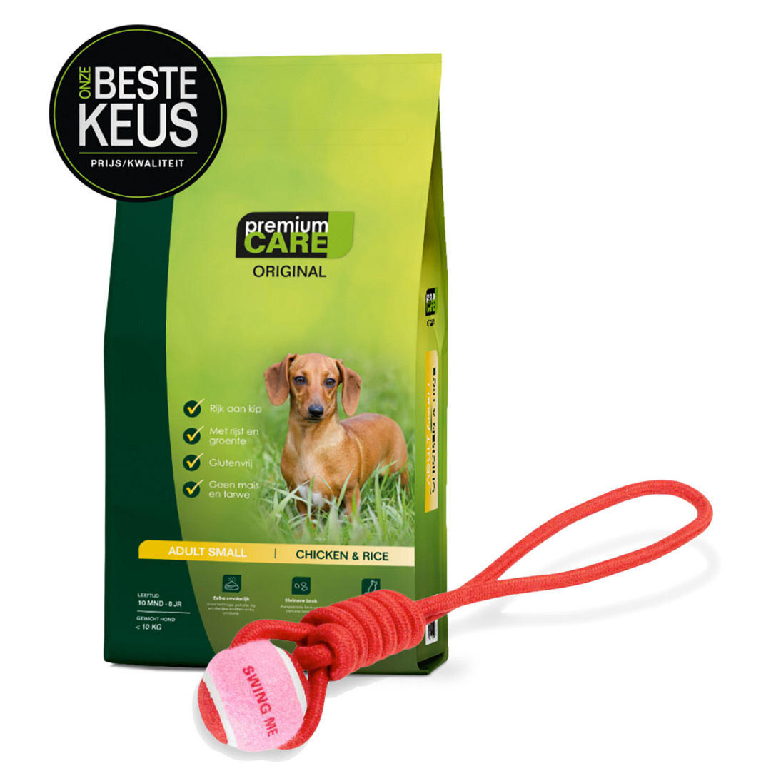 Premium Care Original - Adult Small Chicken & Rice is een glutenvrije, complete droge hondenvoeding, speciaal ontwikkeld voor volwassen honden. Deze speciale formule beantwoordt perfect aan de voedingsbehoeften van honden van kleine rassen en draagt bij tot een optimale levenskwaliteit.