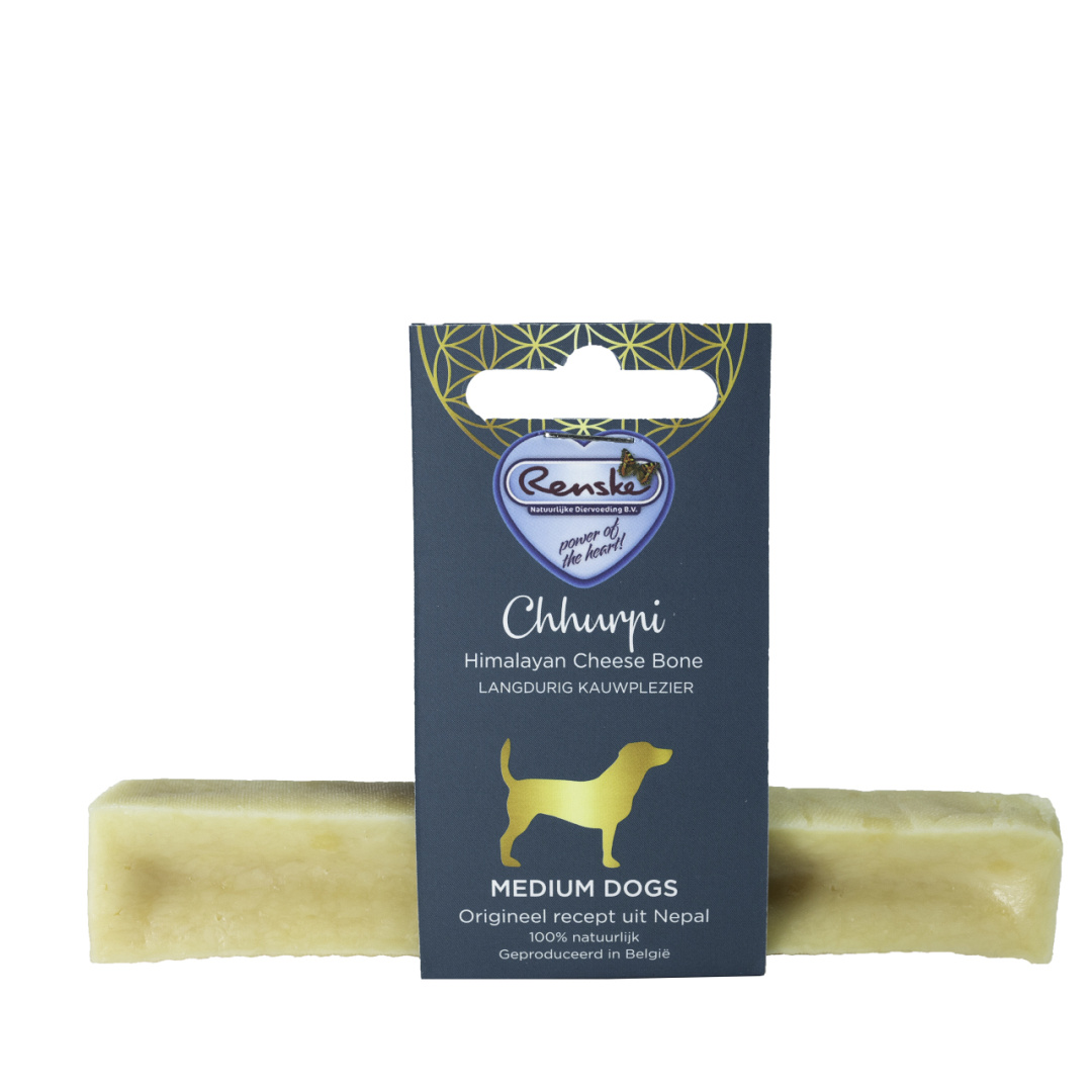 De Renske Chhurpi kauwkluif is een natuurlijke hondensnack gebaseerd op een eeuwenoud recept uit de Himalaya. Handgemaakt op basis van een traditionele methode, is deze kauwsnack een echte verwennerij! Een gezonde snack met een onweerstaanbare smaak!