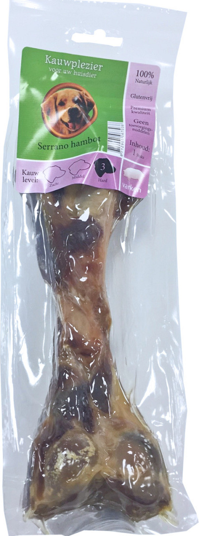 Dit serrano hambot is een heerlijke traktatie voor jouw hond. Deze snacks van premium kwaliteit zijn 100% natuurlijk, glutenvrij en zonder toevoegingsmiddelen.