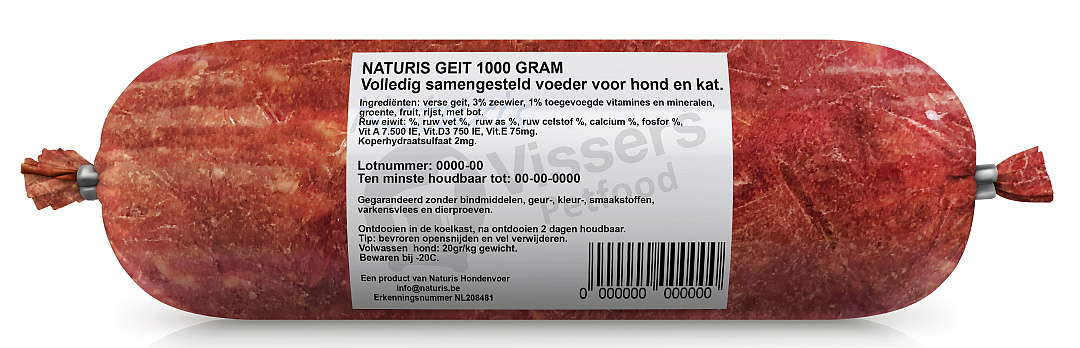 Naturis Vers Vlees voeding Geit kun je ter afwisseling geven en is ook zeer geschikt als eliminatiedieet doordat er maar een eiwitbron in voorkomt (enkel geit). Het wordt van vers vlees gemaakt en diepgevroren om te bewaren. Er worden absoluut geen granen, conserveringsmiddelen, kleurstoffen of bindmiddelen aan toegevoegd.
