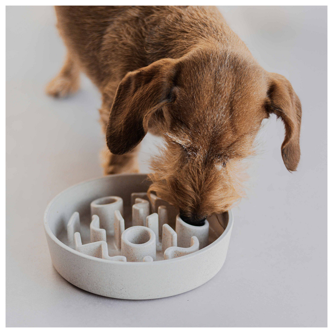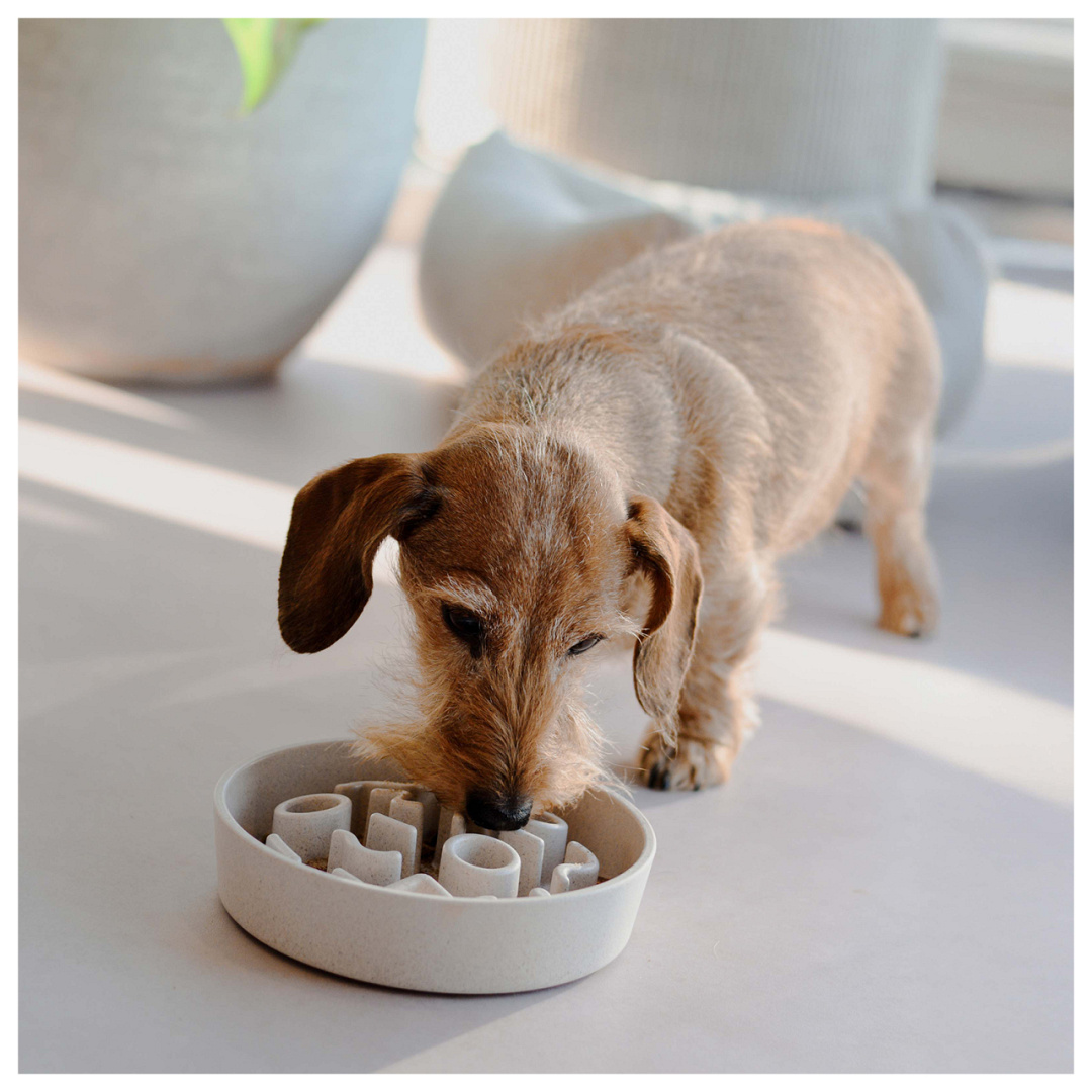 De stijlvolle en praktische District 70 Slow Feeder biedt een manier om jouw hond langzamer te laten eten. Heeft jouw hond zijn maaltijd al op voordat je het weet? En moet hij of zij vervolgens braken? Het schrokken van eten kan gezondheidsnadelen met zich meebrengen, zoals de kans op overgewicht of zelfs een maagtorsie.