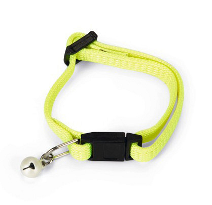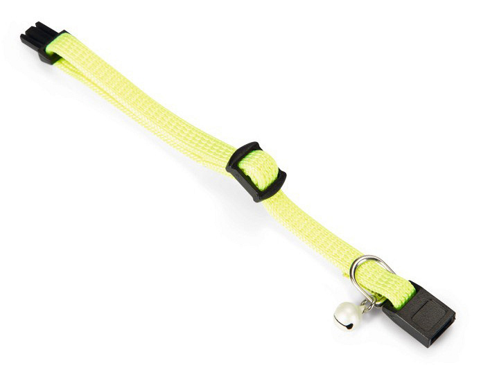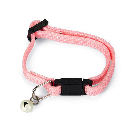 Nylon halsbandje met veiligheidssluiting en een belletje.