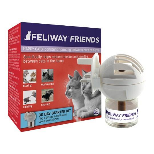 Feliway Friends is een anti stress product voor katten op feromonenbasis. Cat Appeasing Pheromone (C.A.P.). Feliway Friends helpt spanningen en conflicten tussen katten in huis te verminderen. Verdamper inpluggen in het stopcontact, bijgeleverde navulling werkt 1 maand. Navulling desgewenst maandelijks vervangen. De verdamper elke 6 maand vervangen.
