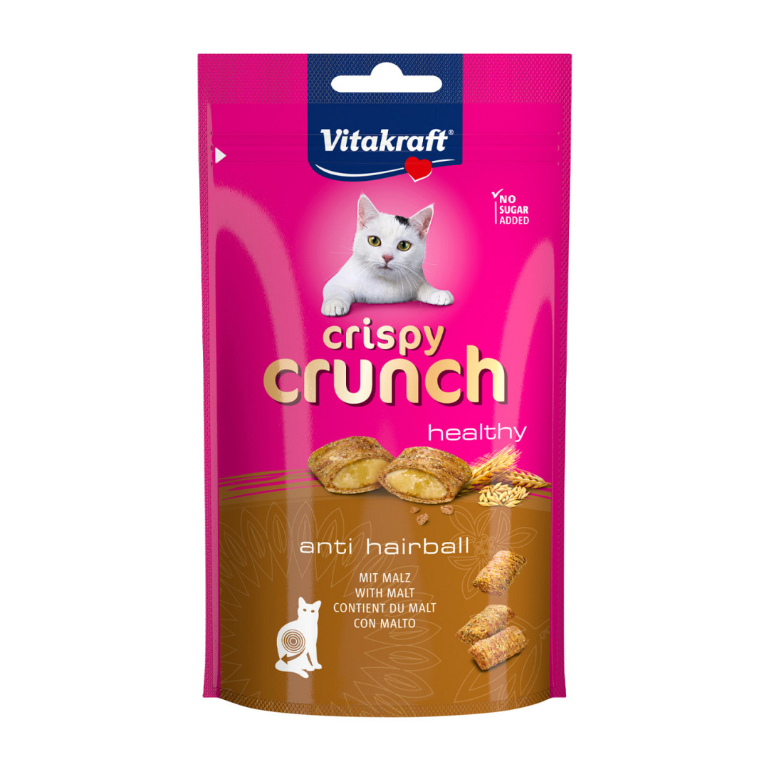 Vitakraft Crispy Crunch zijn onweerstaanbare knapperige snackkussens met mout hebben een romige vulling en zijn hap voor hap een absoluut hoogtepunt voor de kat. De mout voorkomt haarballen. Ideaal als kleine beloning of als tussendoortje.