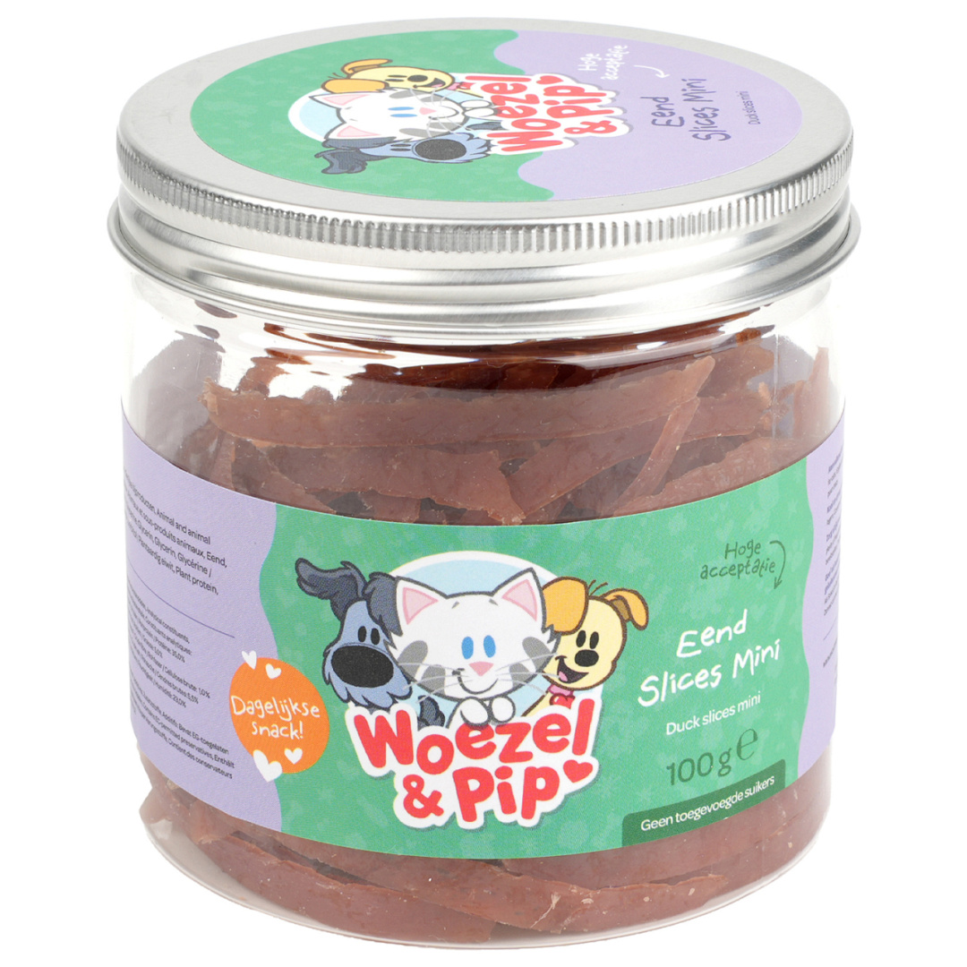 Laat je kat genieten van een moment vol smaak met de kattensnack Eenden slices van Woezel & Pip! Deze malse plakjes van heerlijke eend zijn een luxe traktatie waar jouw kat spontaan van gaat spinnen. Gemaakt met zorg, zonder onnodige toevoegingen, want jouw huisdier verdient alleen het beste. De plakjes hebben een zachte, sappige structuur en zijn perfect voor dagelijks verwennen, als beloning of gewoon, omdat het kan. Dankzij het hersluitbare potje van 100 gram blijven de slices lang vers, geurend en makkelijk te bewaren.