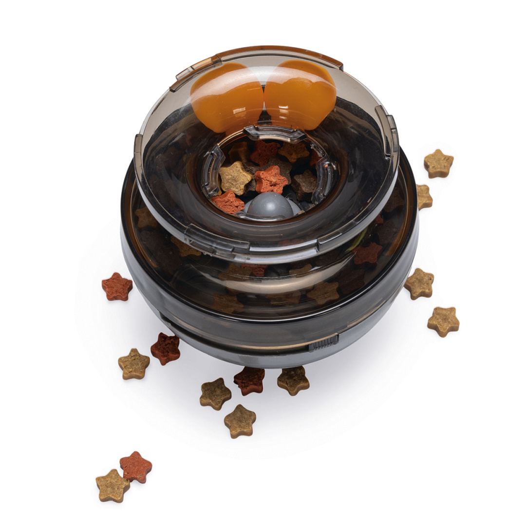 Beeztees kattenspeeltje Wibol beschikt over verschillende speelelementen. Zo is de onderkant van het speeltje rond en verzwaard waardoor er een tuimeleffect ontstaat. Daarnaast heeft het speeltje een gleuf waarin een speelballetje verstopt zit. Dit balletje zal door het wiebelen steeds naar een andere plek rollen, wanneer jouw kat begint te spelen. Het kattenspeeltje kan gevuld worden met overheerlijke kattensnacks! Hierdoor kun je jouw kat al spelenderwijs belonen. Door de bovenzijde los te draaien, kun je de snacks in het speeltje stoppen. Met de schuif aan de zijkant van het speeltje zet je vervolgens de vakjes aan de onderzijde open, waardoor er snacks uit kunnen vallen zodra het speeltje gaat bewegen. Om het speeltje nog leuker te maken, is er aan de bovenzijde van Wibol een lang stokje met een veer bevestigd