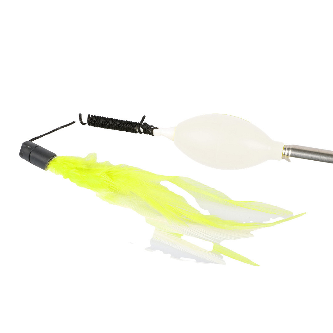 De telescopische kattenhengel van EBI is verstelbaar van 40 tot 75 cm. Het touwtje met veer gaat op en neer doordat het touwtje automatisch om de hengel draait. De snelle beweging maakt het zeer interessant voor de kat. Er wordt een extra veertje meegeleverd die gemakkelijk te bevestigen is door een korte draaibeweging.