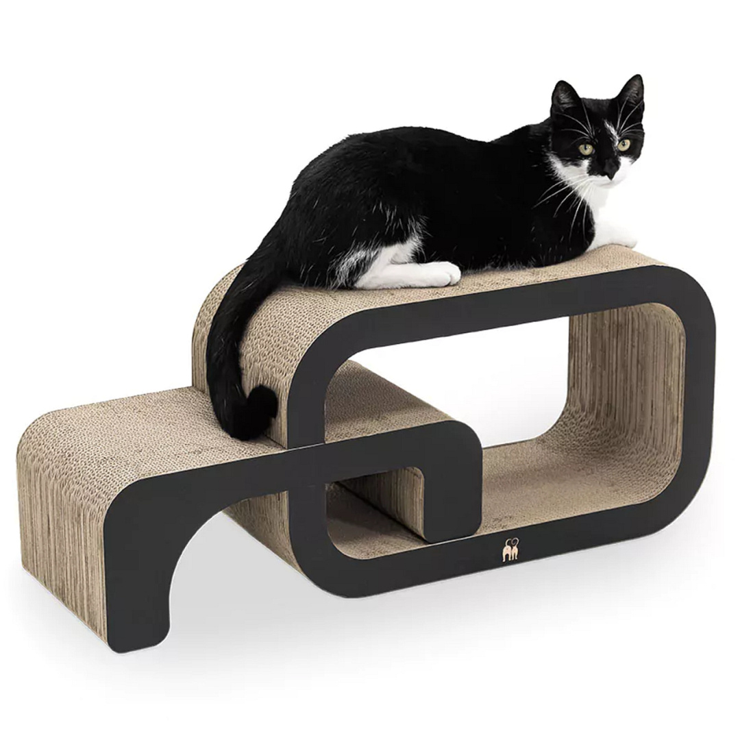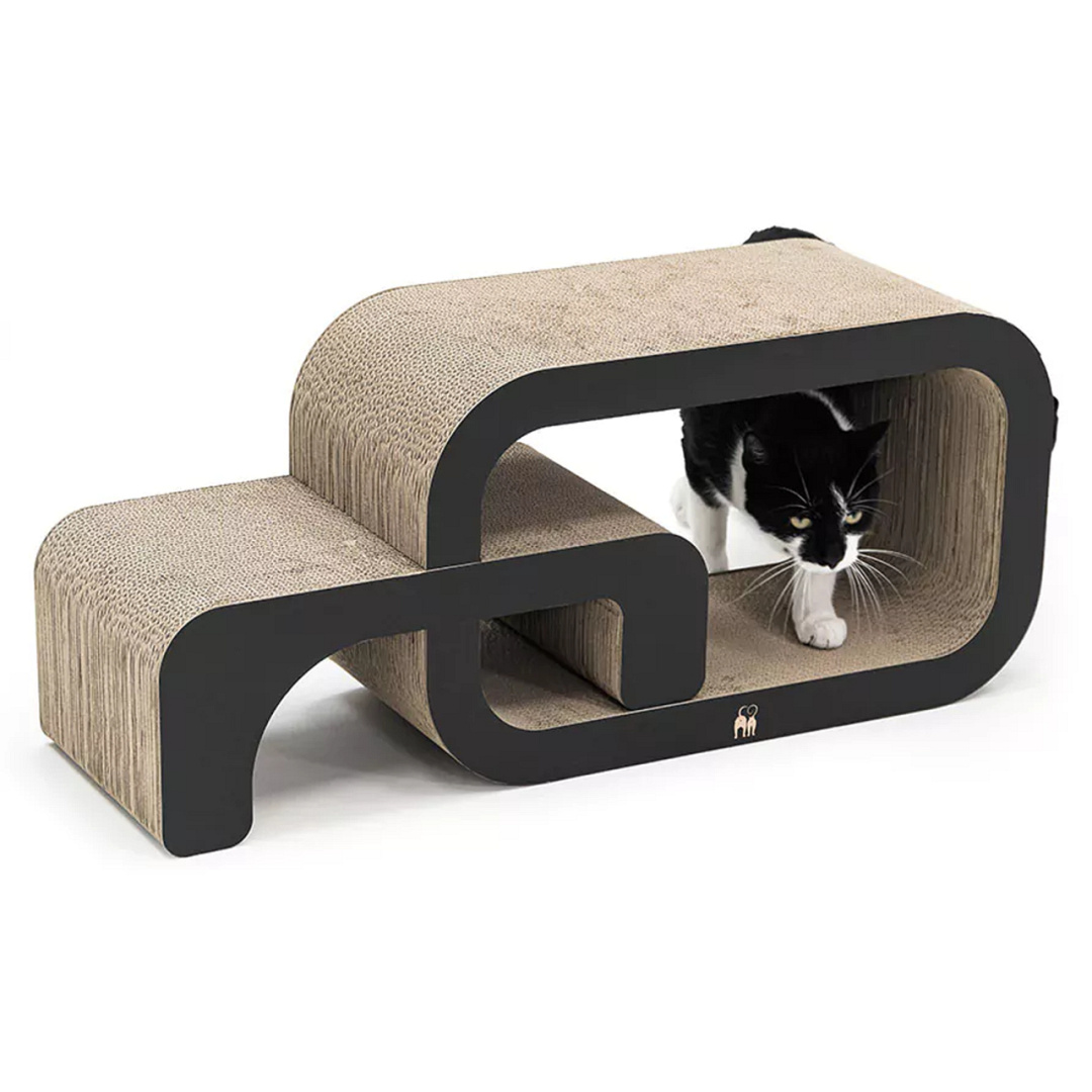 Modulair, kartonnen krabmeubel uit twee delen. Voor katten die van afwisseling houden. Afm. 55 x 24 x 33 cm.