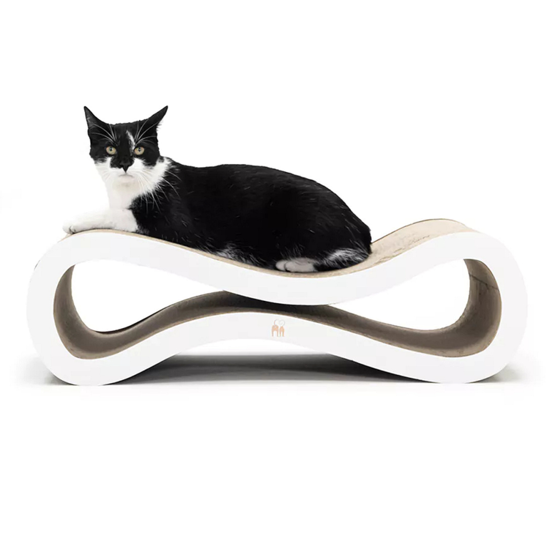 Het Petrebels krabkarton Scratch 'n Rebel Simba 75 is een krabmeubel van gerecycled karton en ontworpen in een sierlijke zandlopervorm. En dat is geen toeval, want daardoor is dit krabmeubel niet alleen een perfecte plek om aan te krabben of om op te relaxen; katten kunnen er ook mee spelen en tussendoor tijgeren. Hoe leuk! De open vorm maakt dit krabmeubel speels, de structuur van het karton is een feest voor kattennagels en het liggende ontwerp is ideaal om horizontaal te krabben. En dat vinden katten fijn: ze houden er hun nagels verzorgd mee, ze kunnen erop relaxen en avontuurlijke rebels kunnen er heerlijk mee spelen. Een multifunctioneel krabmeubel dus!